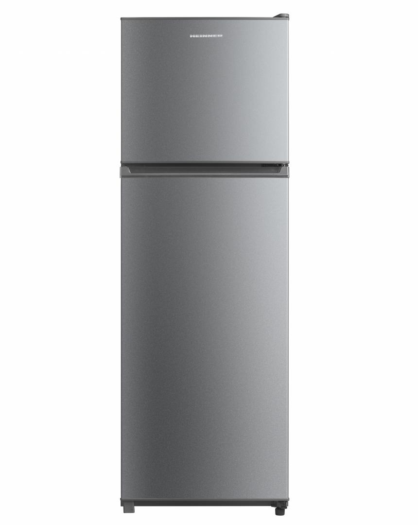 Frigider cu doua usi Heinner HF-M294SE++, clasa energetica: E, capacitate totala: 294L, capacitate frigider: 225L, capacitate congelator: 69L, control mecanic cu termostat ajustabil, lumina LED, 3 rafturi sticla frigider, compartiment pentru fructe si legume, usi reversibile, capacitate congelare: 3.2 kg/24h, dimensiuni (WxDxH): 59.5 x 55 x 176 cm, culoare: Argintiu