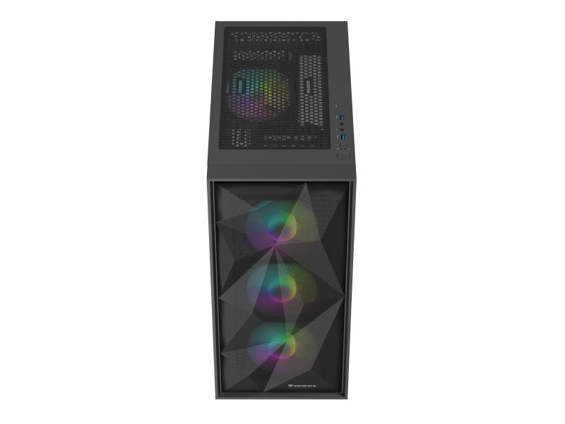 Carcasa GENESIS DIAXID 605 Mid Tower ARGB NEGRU, Tempered Glass, Sloturi Expansiune 7, Drive Bays: 2x3.5" 3x2.5", Ventilatoare Suportate: 8 (spate: 1x120mm, fata: 3x120mm sau 3x140mm, sus: 2x120mm sau 2x140mm, jos: 2x120mm), Ventilatoare Incluse: 4 (spate: 1x120mm, fata: 3x120mm), Format Placa De Baza Suportat: Mini-ITX, Micro-ATX, ATX, Lungime Maxima Placa Video: 351mm, Inaltime Maxima Cooler Procesor: 168mm