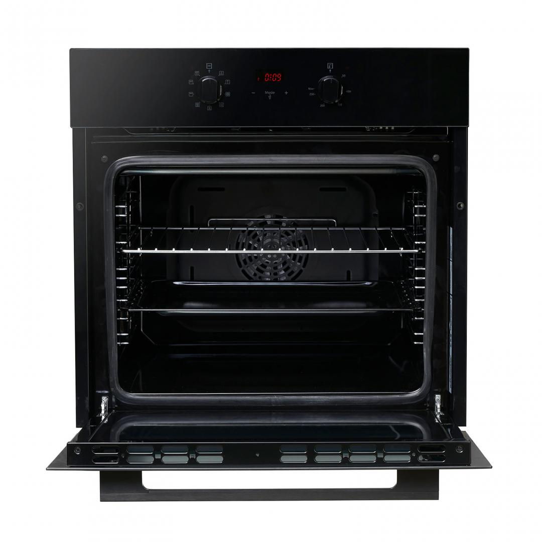 Cuptor incorporabil Heinner HBO-V659GCDRC-GBK, Multifunctional, Capacitate 69L, 9 functii, Clasa energetica A, Timer digital, Display touch+butoane, Grill rapid, Gatire asistata de ventilatie, Functie Turbo, Functie Pizza, Functie dezghetare, Iluminare, Blocare display, Autocuratare catalitica, Geam triplu detasabil, Grilaj metalic lateral, Gratar sarma, Tava, Dimensiuni (LxAxH): 59.5x55.0x59.5 cm, Culoare: Sticla Neagra