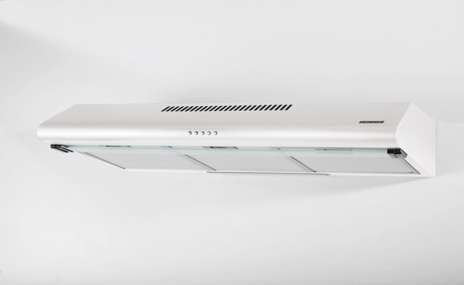 Hota traditionala Heinner HCH-490-WH, 90cm, Putere maxima de absorbtie: 304.5 m3/h, 3 trepte de viteza, Motor: 2 x 60W, Lumina LED: 2 x 2W, 3 filtre aluminiu, Panou sticla frontal, Butoane tip “push”, Diametru tub de evacuare: 120 mm, Dimensiuni (LxAxI): 90x50x15 cm, Culoare: Alb