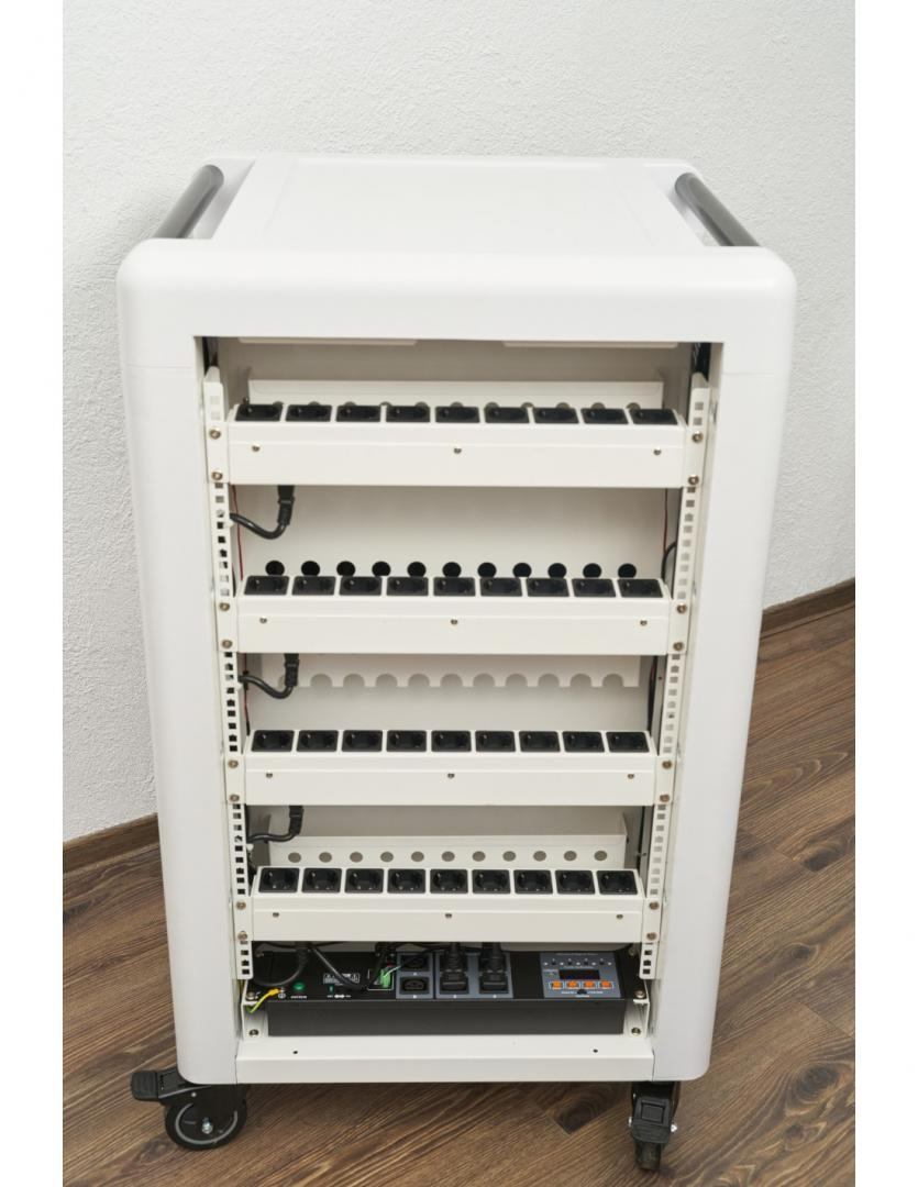 Statie de incarcare CART36, suporta maxim 36 de dispozitive cu diagonala de pana la 15.6", dimensiune slot dispozitiv 2.65 x 39.5 x 26.5 cm, dimensiunea statie 65 x 60 x 113 cm, indicator LED pentru starea de incarcare, multi-function power management, zona dedicata pentru cable management, 2 manere pentru manevrare si mecanism de inchidere pentru usi in 3 puncte, orificii ventilatie pentru panourile din fata/spate