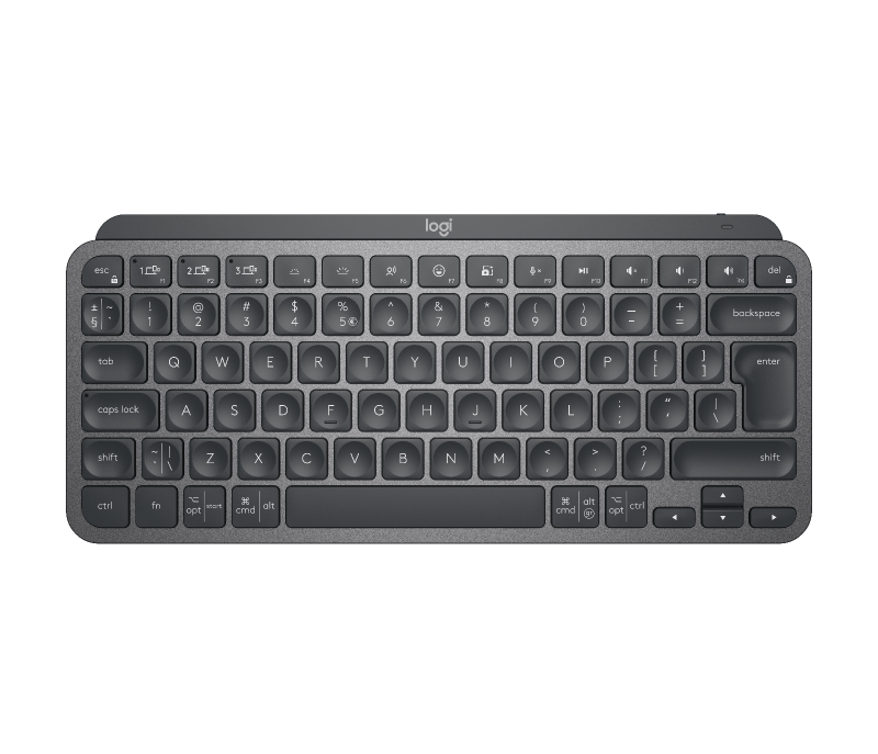 Logitech Master MX Keys Mini. Keyboard form factor: Mini. Keyboard style: Straight. Connectivity technology: Wireless, Device interface: RF Wireless + Bluetooth, Keyboard layout: QWERTY. Backlight type: LED. Recommended usage: Office. Product colour: Graphite