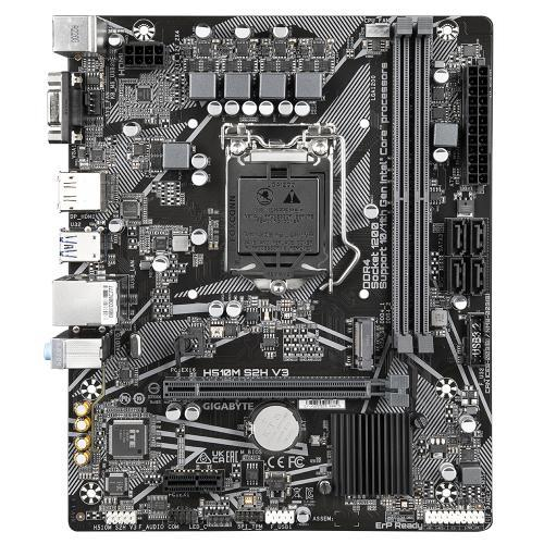 Placa de baza Gigabyte H510M S2H V3 LGA 1200 Intel® H510M Ultra Durable Motherboard with 6+2 Phases Digital VRM, PCIe 4.0* Design, Realtek 8118 Gaming LAN, 3 Display Interfaces Support , Anti-Sulfur Resistor, Smart Fan 6 Supports 11th and 10th Gen Intel® Core™ Series Processors Dual Channel Non-ECC Unbuffered DDR4, 2 DIMMs Ultra-Fast M.2 with PCIe Gen3 X4 & SATA Interface GIGABYTE Exclusive 8118 Gaming LAN with Bandwidth Management 3 Display Interfaces Support High Quality Audio Capacitors and Audio Noise Smart Fan 6 Features Multiple Temperature Sensors , Hybrid Fan Headers with FAN STOP GIGABYTE APP Center, Simple and Easy Use Anti-Sulfur Resistors Design https://www.gigabyte.com/Motherboard/H510M-S2H-V3-rev-10/sp#sp