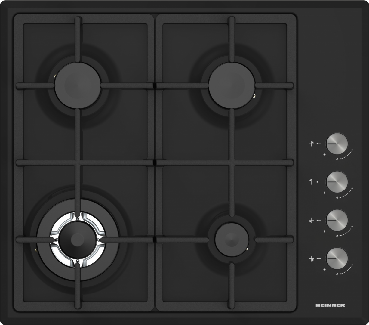 PLITA INCORPORABILA HEINNER HBH-S4IWF-BK, GAZ, 4 ARZATOARE, WOK, GRATAR FONTA, CONTROL LATERAL, APRINDERE ELECTRICA, DISPOZITIV DE SIGURANTA, DUZE GPL INCLUSE, DIMENSIUNI (LXA): 58 X 51 CM, CULOARE: NEGRU