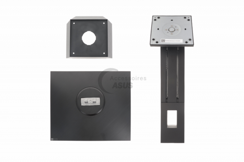 ASUS COMPLETE BLACK STAND, This set is composed of : - the base with metal fork, skids and assembled screws. - the base with the hinge system to tilt the screen. - the fixing support - the fixing screws