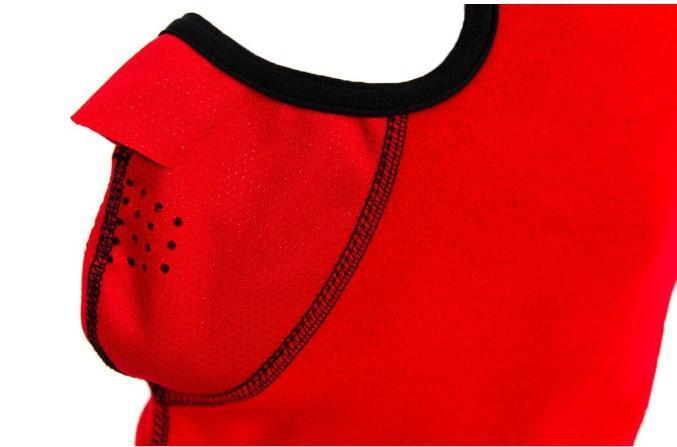 Cagula calduroasa, ce lasa pielea sa respire, perforata la gura si nas pentru a respira mai bine, culoare rosu, material fleece(polar) poliester si membrana windstopper in partea din fata si frunte