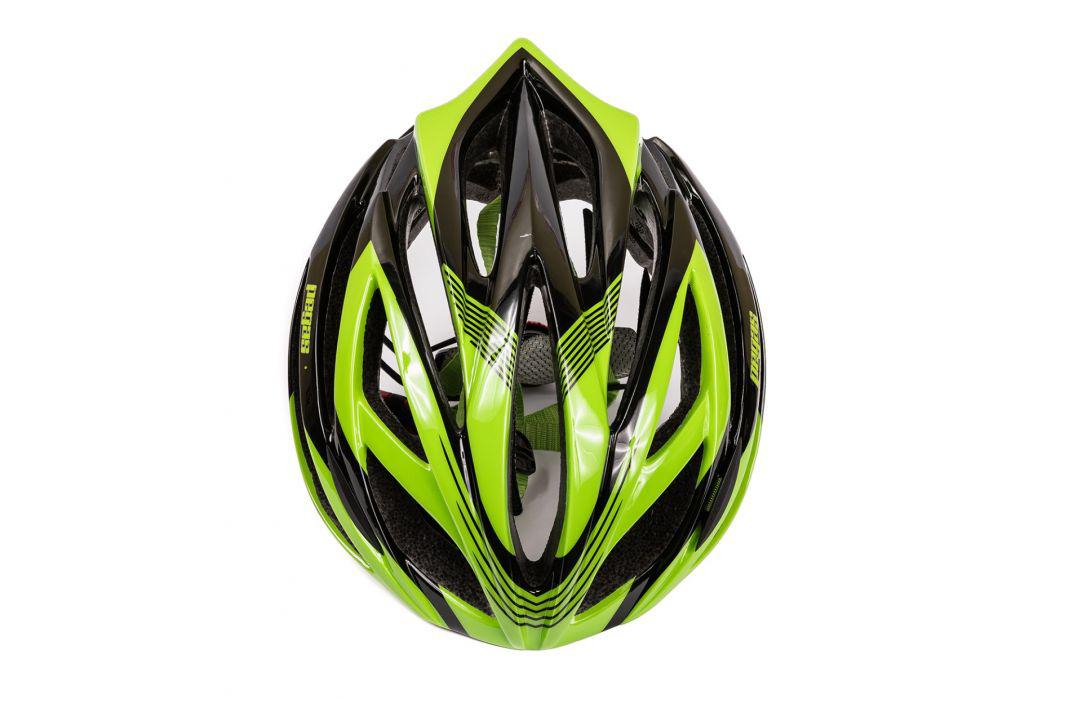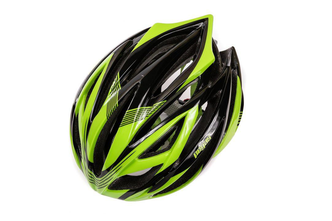 Casca Pegas Omu, material PC+EPS, tehnologie In Mold, ventilatie 21 de gauri, reglaj circumferinta cap, marime M (55-58), culoare Gri + Verde, lucios