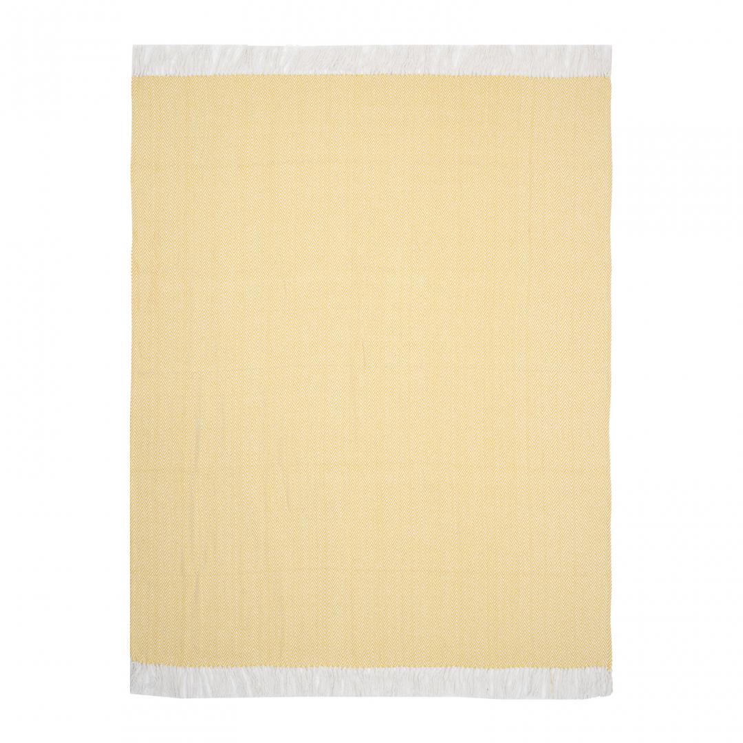 Cuvertura pled cu ciucuri Zig Material : 75% Bumbac si 25% Poliester Dimensiune : 160x200 cm . Disponibile pe galben si albastru