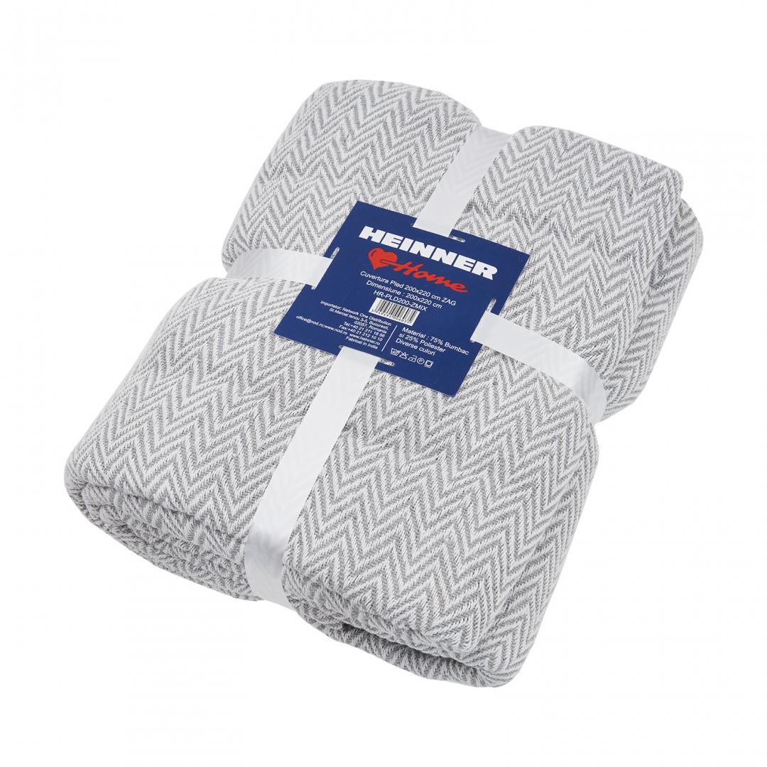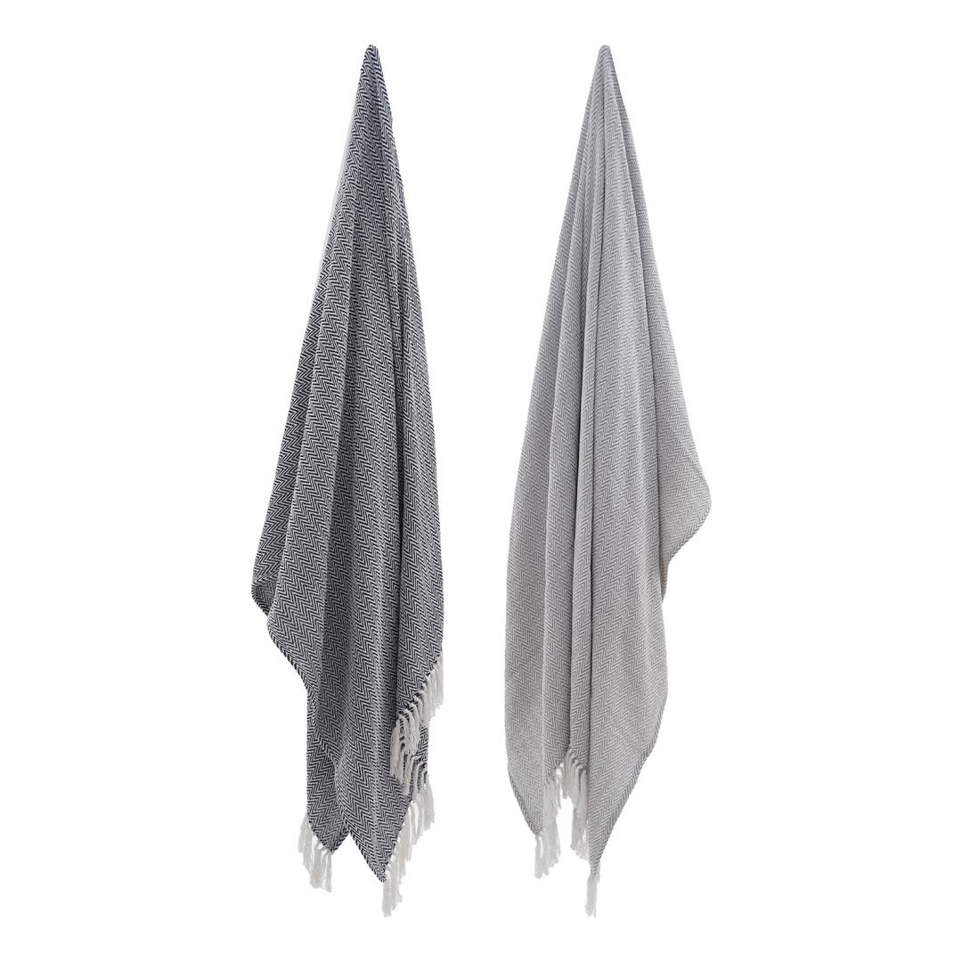 Cuvertura pled cu ciucuri Zag Material : 75% Bumbac si 25% Poliester Dimensiune : 200x220 cm . Disponibile pe negru si gri