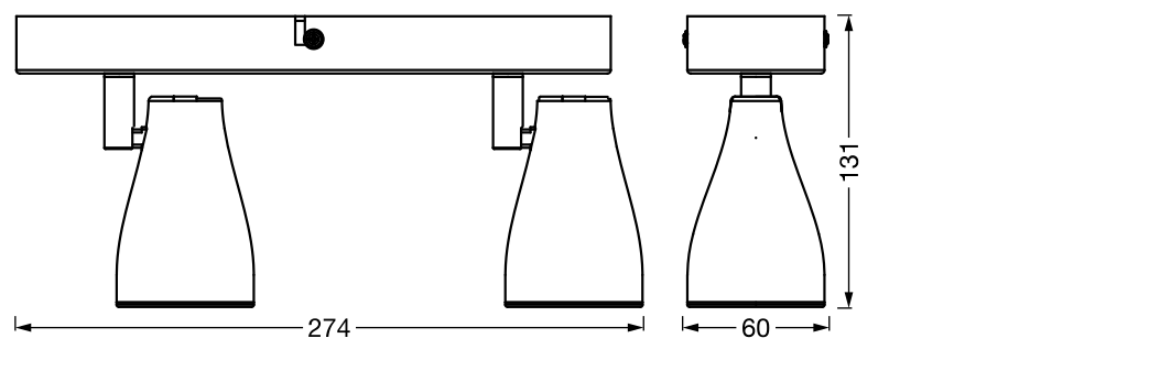 Spot LED dublu ajustabil Ledvance Pear, 2xGU10, 2x4.3W, 700 lm, lumina calda (2700K), IP20, 274x131x60mm, metal/plastic, Alb