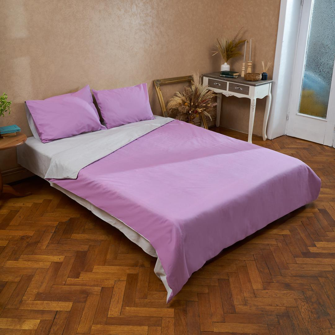 Lenjerie de pat HEINNER King Size in 2 tonuri, Mov si Gri . Material: 100% bumbac de calitate inalta , densitate 144TC. Dimensiuni produs : 2 fete de perna 50x70 cm , cearceaf pilota 200x220 cm , cearceaf pat 220x240 cm. Cearceaful de pilota are sistem de inchidere cu nasturi, fetele de perna stil plic