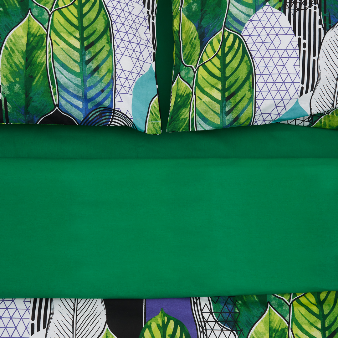 King Size Bed Set 100% cotton, density 132 TC Set containes 2 pillow cases 50x70 cm , one flat sheet 220x240 cm and one duvet cover 200x220 cm Closing system : envelop for pillow and buttons for duvet cover