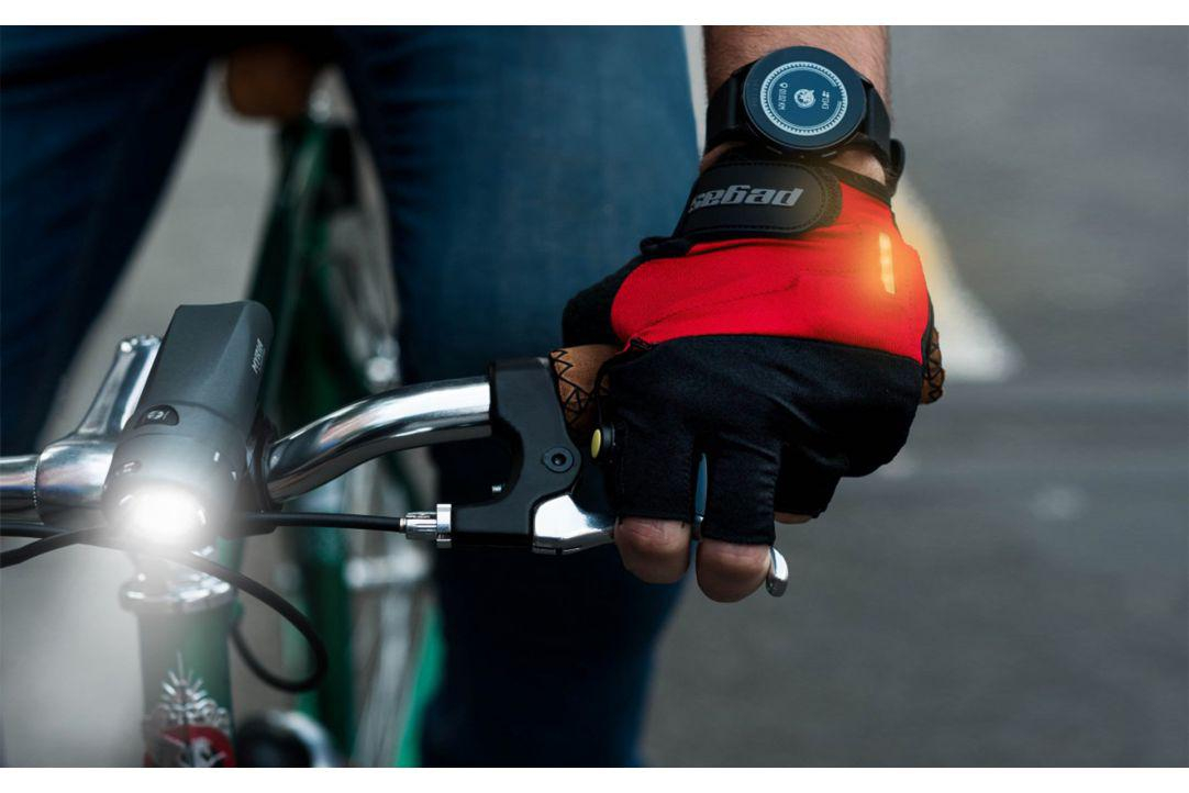 Manusi pentru ciclism din material impermeabil, cu protectie palmara ergonomica pentru aderenta cu mansonul ghidonului si semnalizare electronica in doua moduri: un mod continuu pentru mers pe timp de noapte si un mod alternativ pentru semnalizarea schimbarii directiei de mers. Dispozitivul de semnalizare pe baza de LED cu lumina portocalie este integrat in manusa si este protejat printr-un fermoar ascuns. Acesta se actioneaza cu ajutorul unui intrerupator lipit de degetul aratator printr-un sistem de tip velcro si se apasa cu degetul mare. Functioneaza cu doua baterii de tip CR 2032 3V, cate una pentru fiecare manusa si sunt incluse in pachet.