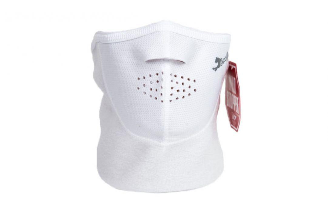 Masca confortabila si rezistenta la vant, perforata la gura si nas pentru a respira mai bine, culoare alb, material fleece(polar) poliester si membrana windstopper in partea din fata
