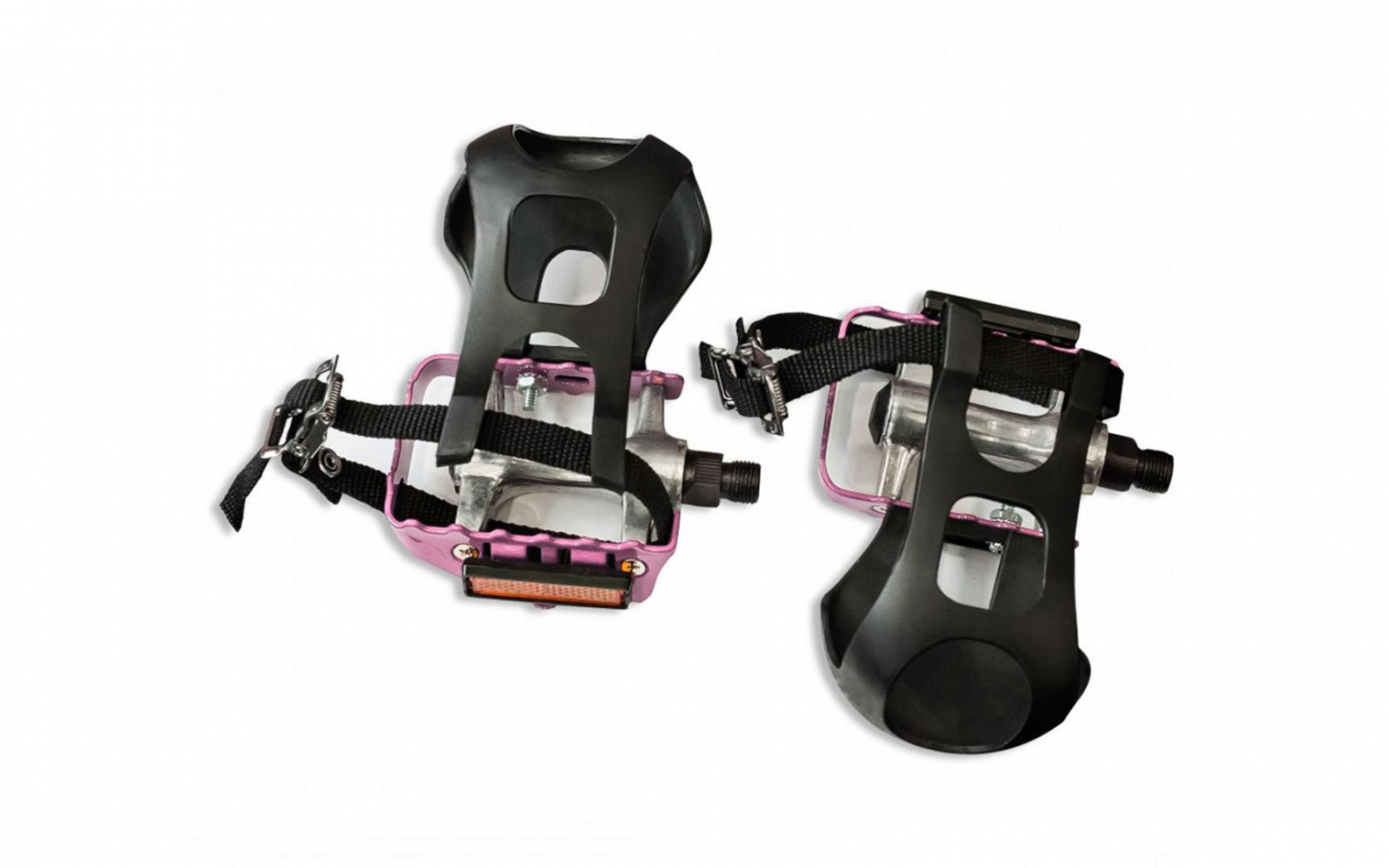 Pedale Aluminiu cu Ratrape plastic, 869LC, rama otel, curea Nylon, Ax CrMo 9/16, ARG / ROZ
