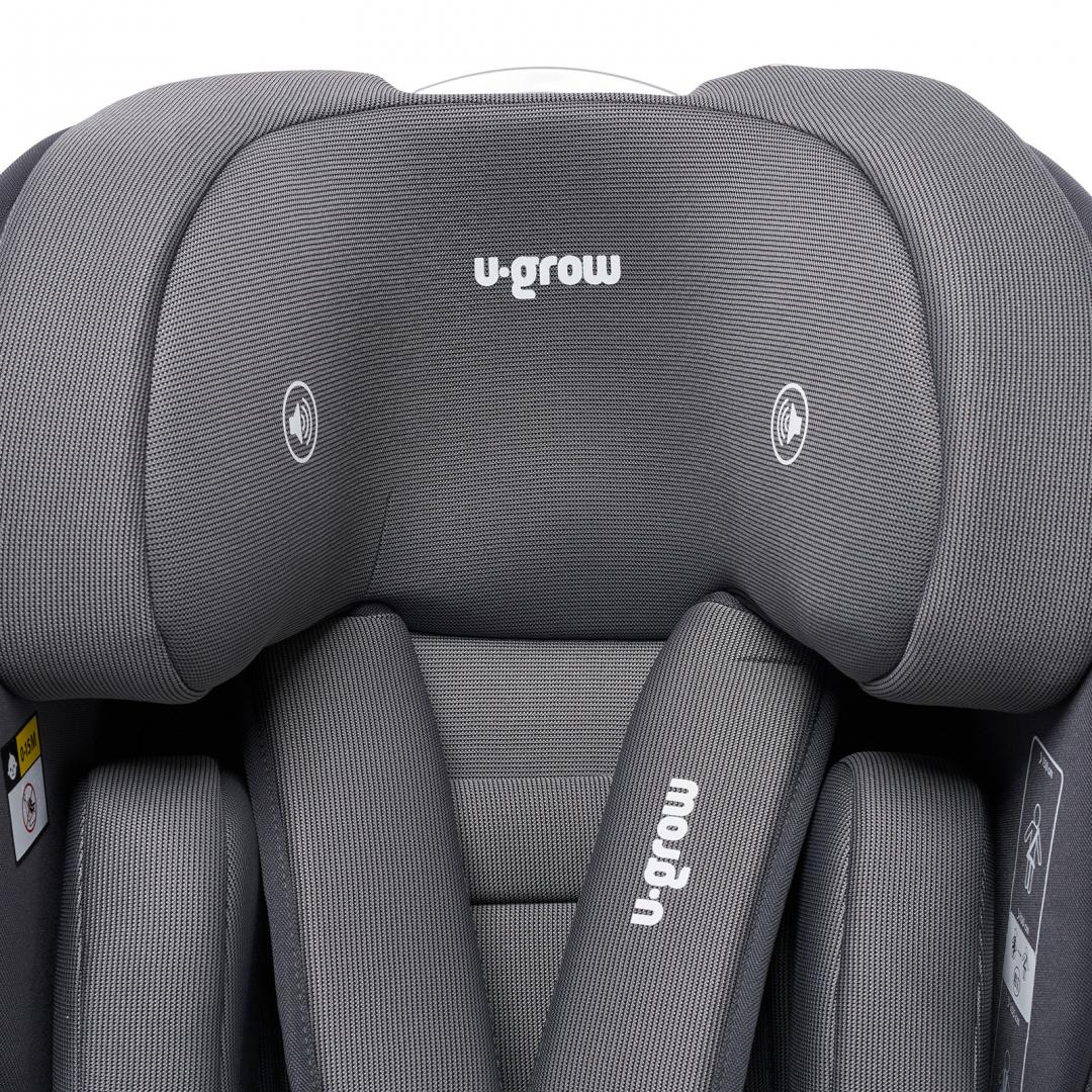 Scaun auto I-size U-Grow Goldfix Plus, isofix, 76-150 cm, boxa bluetooth, gri