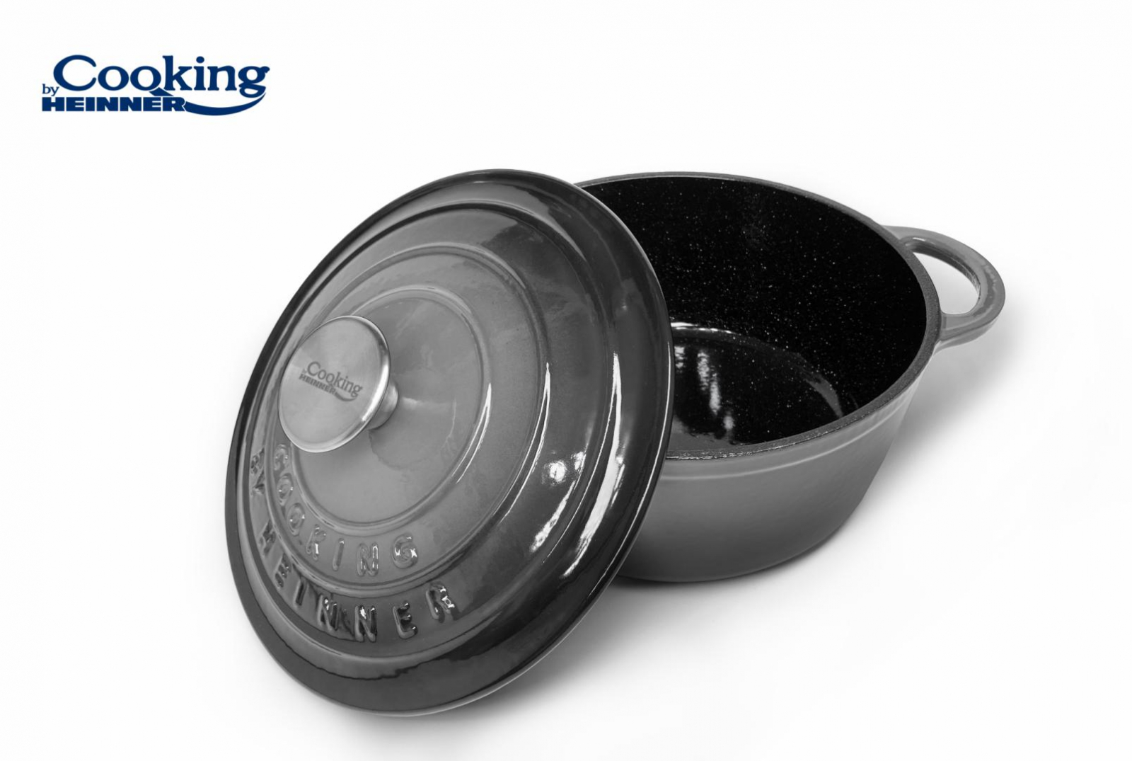 ENAMELED CAST IRON POT+LID 24 x 11.5 CM MARBLE GREYCapacity:4LExterior coating: paint enamel gray gradientInterior coating: black enamel paint with white dotsKnob material: stainless steel