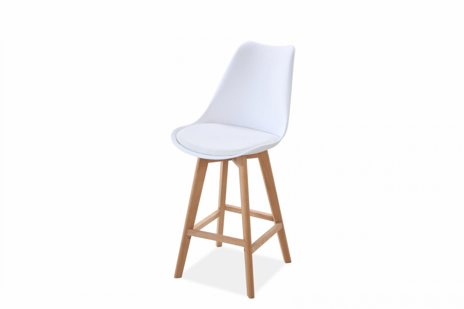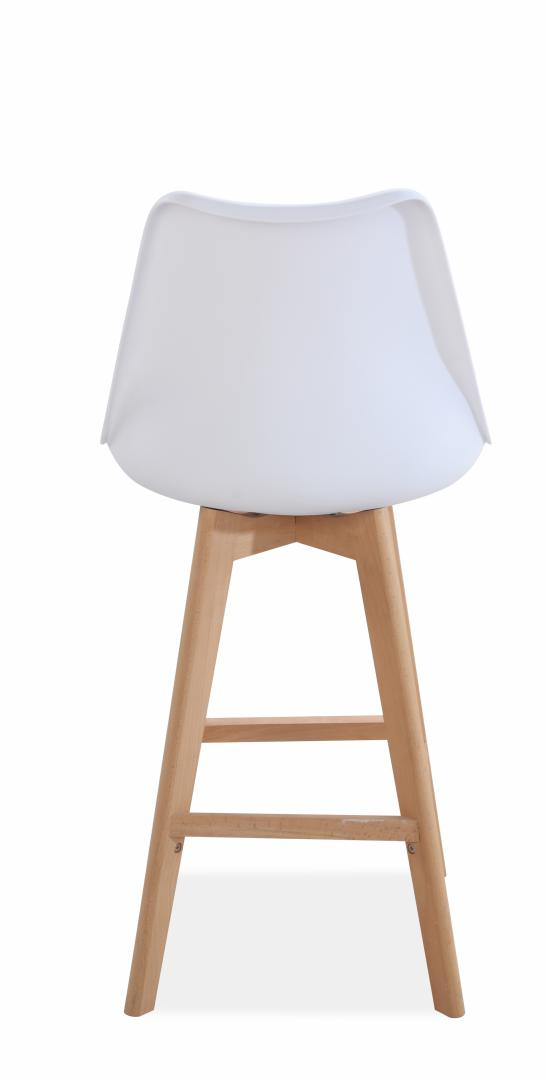 Scaun bar Itsy 106x47x48 cm Alb-Set 2 buc Dimensiuni produs : inaltime 106 cm adancime 47 cm latime 48 cm inaltime sezut 68 cm Material: spatar si sezut din piele ecologica, picioare din lemn de fag Greutate maxima suportata 200kg