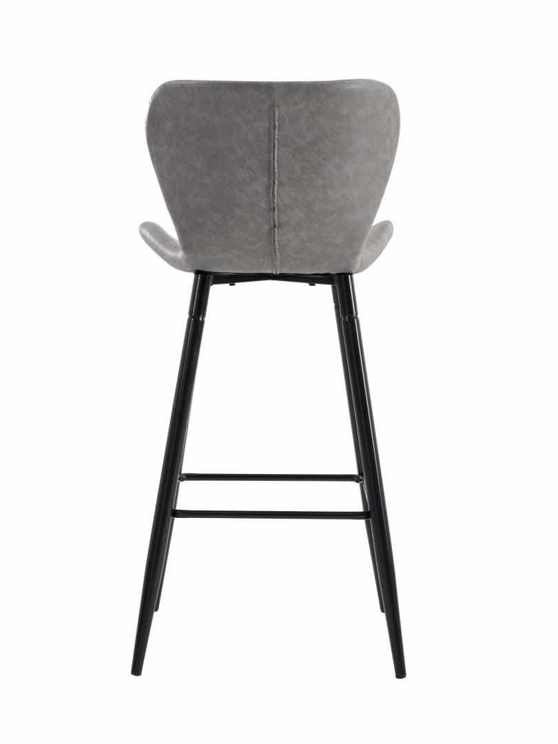 Set of 2 retro bar chairs - Light grey Seat dimensions: 56x48x106 cm Seat depth: 36 cm/Seat width 46 cm/Seat height 72 cm Material: black metal legs, plastic seat covered in ecological leather upholstery, foam filling Maximum weight supported 150kg