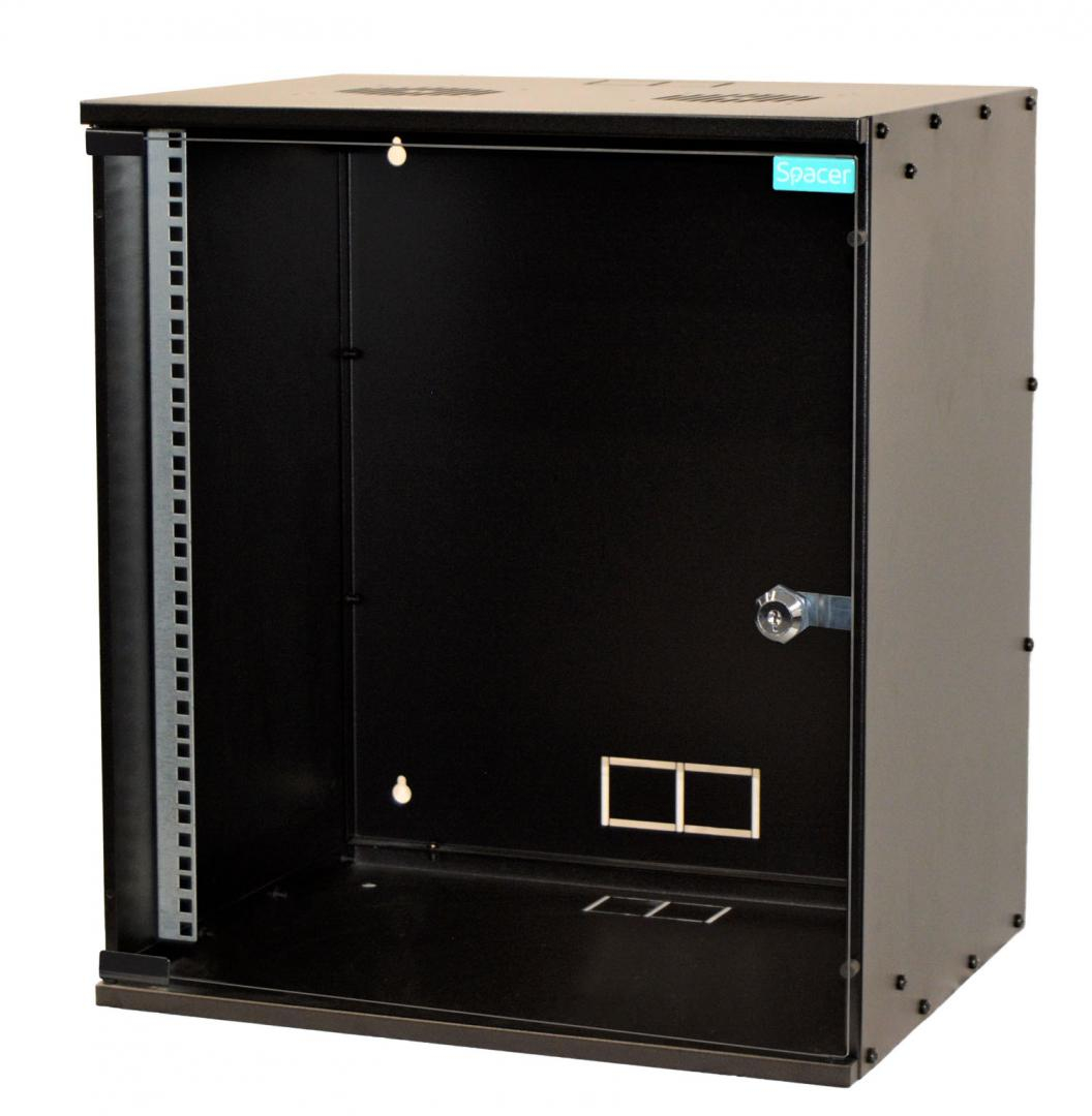 CABINET 19″ SPACER 12U, fixare pe perete, Flatpack (dezasamblat), Black, 582 (h) x 515 (w) x 450 (d) mm, usa sticla cu blocare, otel 1.5mm, sarcina maxima 100Kg