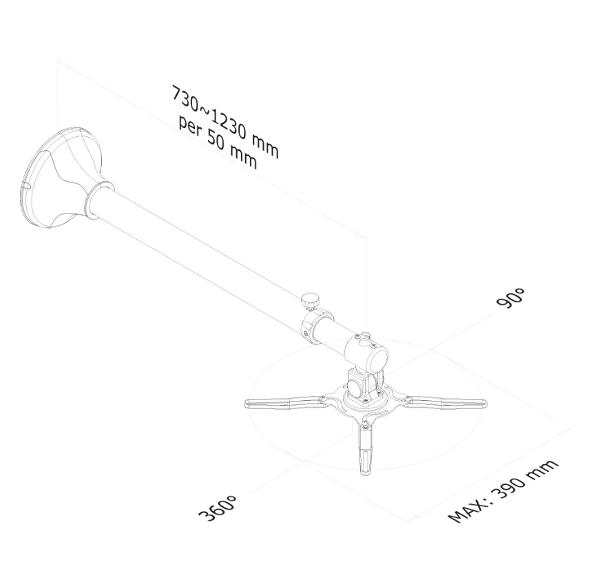 Suport pt videoproiector de perete Neomounts BEAMER-W100SILVER; suporta pana la 12kg, tip reglare full motion, tilt 90°, swivel 360°, distanta fara de perete, 73-123 cm, argintiu. Garantie 5 ani