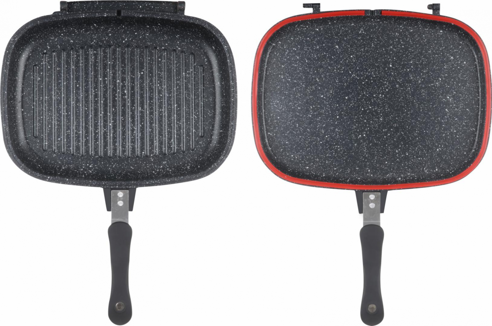TIGAIE DUBLA DREPTUNGHIULARA TIP GRILL, ALUMINIU, 32x24x7.5 CM, DARKLINE INDUCTIEAluminiu turnat : 2.0 mmManer bachelita cumagnetinterior Non-Stick marmoratExterior : negru;Rezerva : garnitura de siliconBAZA INDUCTIE