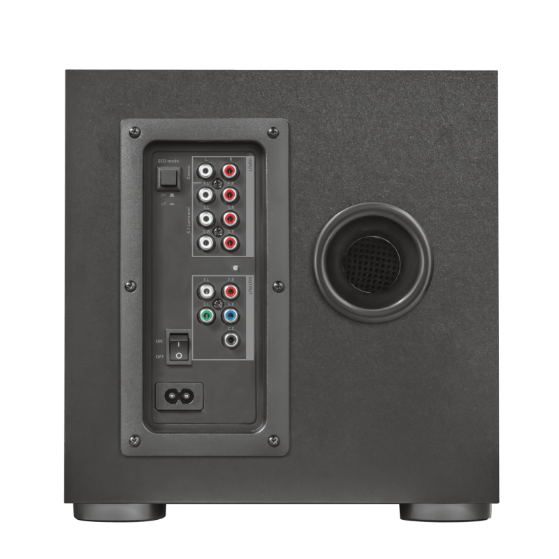 Siste msunet 5.1 GXT 658 TYTAN SPECIFICATIONS General Type of speaker 5.1 Total weight 6160 g Features NFC no Hands-free phone calls no Tripod mount no Power saving yes Control Remote control wireless Controls power saving button, volume, bass Connectivity Connection type wired Bluetooth no Cable length audio cable 180 cm Cable length subwoofer to front satellite cable 280 cm Cable length subwoofer to rear satellite cable 500 cm Cable length subwoofer to center satellite cable 280 cm Audio Power output (peak) 180 W Power output (RMS) 90 W Frequency response 20 Hz - 20000 Hz Speaker impedance 4 Ohm Audio input 3.5 mm Headphone connection no Microphone built-in no Microphone connection no Lighting Lights yes Light type Bass-synced LED Subwoofer (pulsating blue) Protection Waterproof no Power Power cable detachable yes Input Power source wall socket Compatibility Compatible Device Types pc, laptop, smarttv General compatibility pc with 5.1 analog output Satellites Satellite Height (mm) 100 mm Satellite Width (mm) 206 mm Satellite Depth (mm) 100 mm Subwoofer Subwoofer Height (mm) 252 mm Subwoofer Width (mm) 252 mm Subwoofer Depth (mm) 268 mm Center speaker Center speaker Height (mm) 260 mm Center speaker Width (mm) 105 mm Center speaker Center speaker Depth (mm) 98 mm Remote Batteries for remote included yes Remote Height (mm) 71 mm Remote Width (mm) 40 mm Extra information Item number 21738 EAN code 8713439217384 Warranty 2 years Package contents Subwoofer 4x satellite speakers with cables attached 1x center speaker with cable attached Wireless remote control incl. battery Converter cable to connect game console Power cable User guide Gaming sticker System requirements PC or notebook with 3.5 mm audio connection Wii, PlayStation 3 or Xbox 360 game console (requires AV-cable, included with your game console) Wall power connection *5.1 surround sound only available on PC with 5.1 surround compatible (3x 3.5mm outputs) connection https://www.trust.com/en/product/21738-gxt-658-tytan-5-1-surround- speaker-system