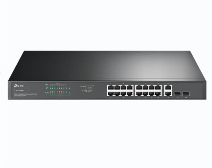 "18-Port Gigabit Rackmount Switch with 16-Port PoE+ PORT: 16× Gigabit PoE+ Ports, 2× Gigabit Non-PoE Ports, 2× Combo Gigabit SFP Slots SPEC: 802.3at/af, 250 W PoE Power, 1U 19-inch Rack-mountable Steel Case FEATURE: Plug and Play"